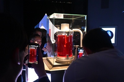 (写真・「パソナネイチャーバース」ではiPS細胞からつくられたiPS心臓が見られた=2025年4月9日)