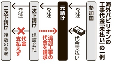 大阪・関西万博で忘れてはいけないのは、建設費の未払い問題です。建設工事にかかわった業者が、元請け業者などからの工事代金が未払いになっていると相次いで訴えているのです。万博協会によると、海外パビリオン計11館の工事を請け負った関係者から相談が寄せられているそうです。原因として指摘されているのが、工期の遅れです。限られた工期で工法変更などに伴う追加工事が相次ぎ、未払いが生じたと複数の業者が主張しています。専門家は、計画段階からトータルですべてのプロセスを振り返り、今後このクラスの国家イベントで同じような問題が起こらないようにしなければいけないと語っています。