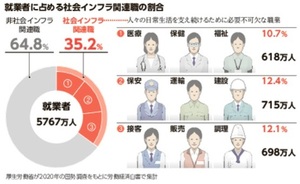 冒頭のデータが示されたのは、厚生労働省が9月に公表した「労働経済の分析(労働経済白書)」です。毎年公表されていますが、今回の白書では人手不足に注目して分析をしています。エッセンシャルワーカーとされる医療・福祉、運輸・建設、接客・調理などの職種について「社会インフラ関連職」と定義し、約2200万人を対象として調査しました。
