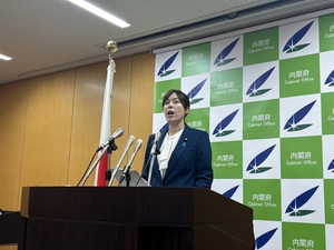(写真・就任後初の記者会見をする小野田紀美・外国人政策担当相=2025年10月22日)