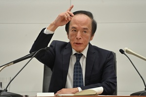 (写真・記者の質問に答える植田和男総裁=2025年12月19日/朝日新聞社)