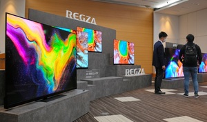 (写真・ハイセンス参加のTVS REGZA新商品の発表会=2023年4月7日)