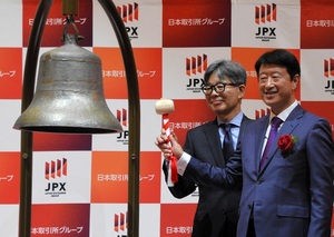 (写真・株式上場のセレモニーで鐘を打つオリオンビールの村野一社長(右)=2025年9月25日/朝日新聞社)