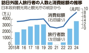 日本を訪れる外国人観光客が増え続けています。9月の訪日外国人客は326万6800人で9月としては過去最多でした。2025年1~9月の累計は3165万500人で、前年同期に比べて17.7%増えています。2025年通年では4000万人を超えることが確実視されていて、高すぎるように思えた「2030年に6000万人」という政府の目標にも着実に近づいています。